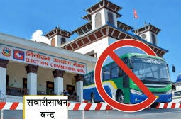 आज रातिदेखि देशभर सवारीसाधन सञ्चालनमा रोक लगाइने भएको छ । प्रतिनिधिसभा सदस्य निर्वाचनलाई स्वच्छ, निष्पक्ष र भयरहित वातावरणमा सम्पन्न गराउने उद्देश्यले निर्वाचन आयोगको निर्देशनअनुसार मतदान प्रक्रिया नसकिँदासम्मका लागि सवारी ‘लकडाउन’ लागू गरिएको हो ।